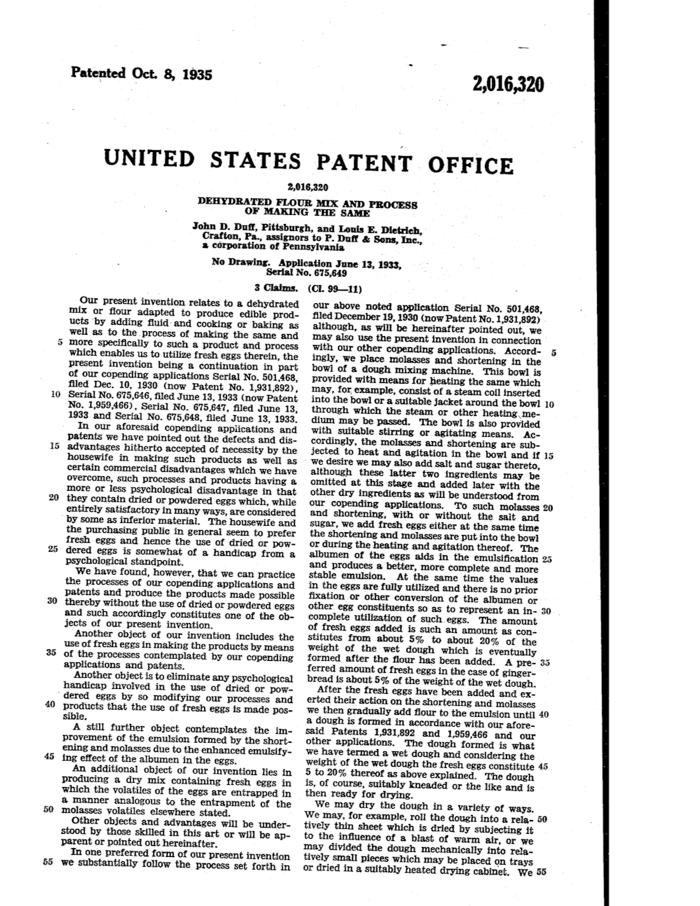 من المحتمل أن تكون هذه القصة مبالغ فيها للغاية (٢). هذه الحقائق المزعجة تشمل شركة أخرى ، وهي شركة دانكن هاينز (Duncan Hines) (٣) التي لها وصفة خلطة كيك تستخدم البيض الطازج (طورها الكيميائي الغذائي آرلي أندري Arlee Andre، ٤) منذ عام ١٩٥١. وفي عام ١٩٣٥ ، حصلت الشركة پ داف آند سانز (P. Duff and Sons) على براءة اختراع لخلطة كيك تستخدم البيض الطازج (٥).