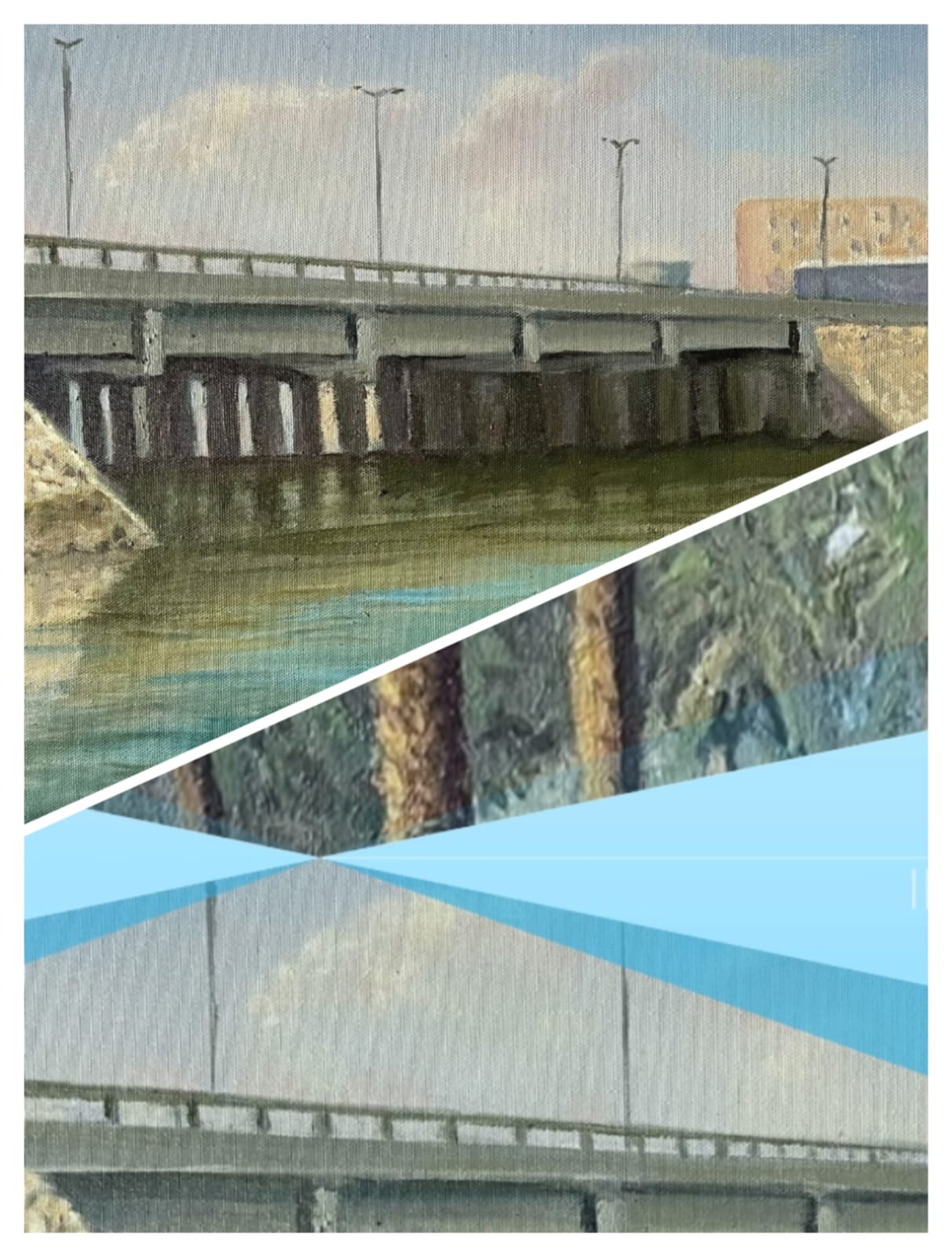 لوحة فنية بريشة الفنان “عبد الكريم الرامس” لجسر شارع الرياض بين القطيف وتاروت ،،،،،