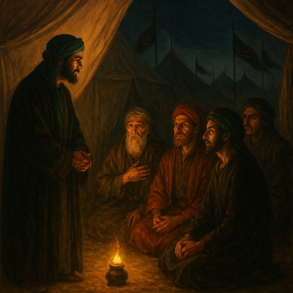 الحسين (ع)، الإمام الذي يعلم أن الصبح سيحمل معه الدماء والدموع، قام ليلقي عليهم كلمته الأخيرة؛ كلمة لا تشبه خطب القادة، بل تشبه عتب قلبٍ يعرف أن القوم لا يريدون إلا رأسه، ويخشى أن يُثقل الآخرين بحمله.