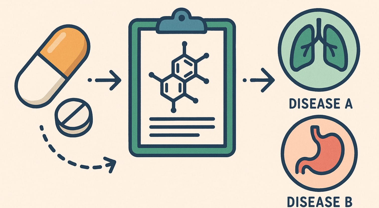 4- معدل نجاح أعلى: نظرًا لأن هذه الأدوية قد أظهرت بالفعل فعالية في بيئة بيولوجية (حتى لو كانت لمؤشر مختلف)، فإن فرص نجاحها في التطبيقات الجديدة غالبًا ما تكون أعلى بكثير مقارنة بالمركبات الجديدة تمامًا التي تبدأ من الصفر (حيث يتجاوز معدل الفشل 90%). الخبرة السابقة في استقلاب الدواء وتوافره الحيوي في جسم الإنسان تمنح ميزة كبيرة.