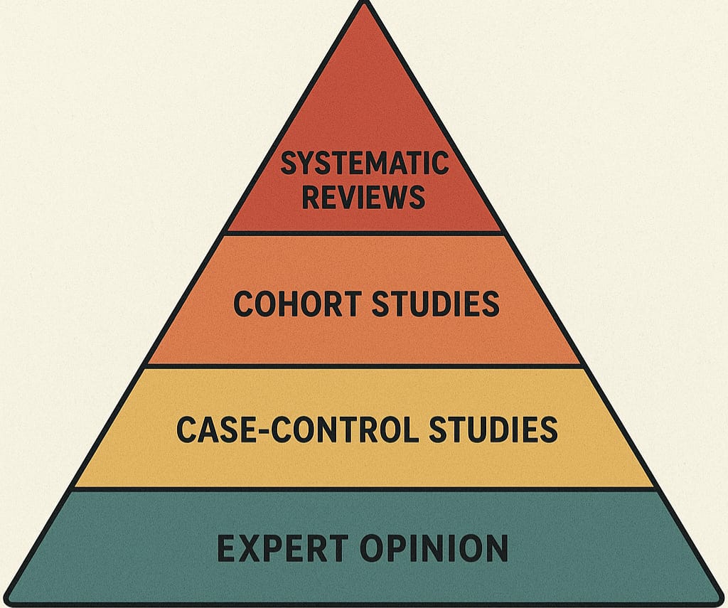 تشكل الدراسات العلمية الركيزة الأساسية لتطوير المعرفة العلمية وتحسين الرعاية الصحية. تهدف هذه الدراسات إلى فهم الأمراض، تقييم التدخلات الطبية، وتحديد العوامل المؤثرة في الصحة العامة. تصنف الدراسات العلمية في المجال الصحي بناءً على تصميمها، سواء كانت وصفية أو تحليلية أو تجريبية، وتختلف مستويات قوتها العلمية حسب هرم الأدلة العلمية (Evidence Pyramid)، حيث تكون المراجعات المنهجية والتحليلات التراكمية (Systematic Reviews & Meta-Analyses) في القمة كأقوى الأدلة، تليها التجارب العشوائية المضبوطة، ثم الدراسات التحليلية المراقبة، وأخيراً الدراسات الوصفية في القاعدة كأضعفها.