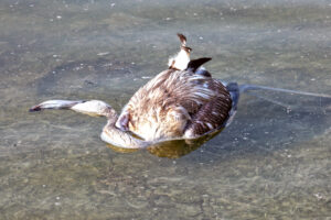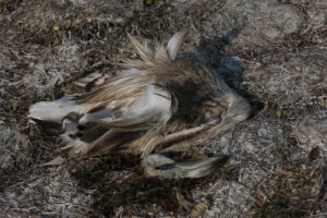 احتمال تعرض الطيور إلى الصيد أو التشابك في الشباك، أو إصابة جسدية ناتجة عن أنشطة بحرية (قوارب، تلوث ميكانيكي). هذه الفرضية تُفحَص عادة عبر التشريح الميداني للطيور النافقة.