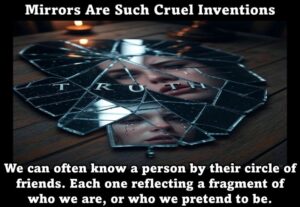 لكن المرايا الزجاجية اكثر برائة عند مقارنتها بمرايا البشر. الناس أكثر حِدّة. هناك حقيقة كونية تقول: الإنسان مرآة أخيه. عبارة لطيفة، أليس كذلك؟ لكنها تصبح مرّة حين تُريك “حقيقتك”: قبحك: كبرياءك، تسرعك، أو طمعك.