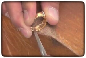 تُؤخذ عيّنة من المشغول أو السبيكة الذهبية باستخدام المقص أو المثقب – وفي حالة كانت السبيكة – تُؤخذ من الوجه والظهر والطرفين، مع الحرص على أن تكون العينة ممثلة لكافة أجزاء القطعة المراد تحليلها، لضمان دقة النتائج في تحديد العيار.