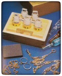 مع ملاحظة: – أن هذه الطريقة تُستخدم للتقدير السريع، إلا أنها لا تُغني عن التحليل الدقيق المعروف بطريقة “التجفين”، والتي تُعتمد في المختبرات لتحديد عيار الذهب بدقة عالية.