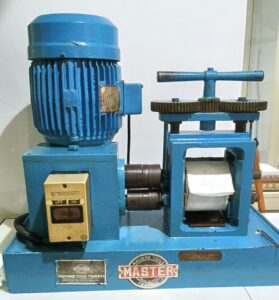 تضغط على المكبس وتصفح العينة بواسطة ماكينة السحب، لتحويلها إلى شريحة رقيقة لتكون سهلة الحل. بعد ذلك، تُخمر على نار هادئة لاكتساب الليونة المطلوبة لكي لا تشقق العينة أثناء الطرق والسحب، ثم تُلف بشكل حلزوني استعدادًا لوضعها في حامض النيتريك.