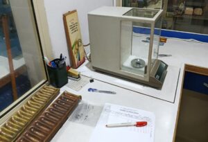 بعد الانتهاء من عملية التجفين بالكامل، تُعاد العينة إلى الميزان الحساس لقياس وزن الذهب النقي بدقة. تُسجَّل قراءة الوزن بعناية، كونها تمثل الكمية الصافية من الذهب النقي في العينة.