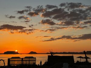 واصلنا السير حتى وصلنا إلى الساحة المطلة على البحيرة، حيث تجمع الناس استعدادًا لمشاهدة غروب الشمس.