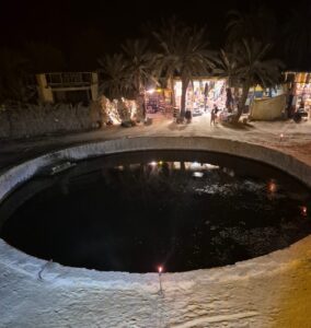 وفجأة انقطعت الكهرباء! لكن الحظ حالفنا، إذ كنا قد أوشكنا على إنهاء طعامنا. ساد المكان ظلام هادئ جميل، وظهرت النجوم اللامعة في سماء سيوة تبدو قريبة كأنها تنادينا وتؤنسنا بنورها المتلألئ. قلنا ونحن نتأملها: “أين هذه النجوم من مدننا اليوم؟ لقد غابت عنّا خلف أضواء الكهرباء وضجيج الحياة، ولم تعد تُرى إلا في الصحراء”.