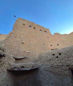 في تمام الساعة الخامسة مساءً، انطلقنا بالحافلة متجهين إلى قلعة سِيوَّة القديمة، التي تُعرف محليًا باسم «شالي». كانت القلعة مدهشة بجمالها وقدمها، وقد أخبرونا أنها كانت تُشكّل نواة البلدة القديمة. تقع القلعة على إحدى الهضاب الرملية، وبُنيت من حجر الكرشيف وهو خليط من الطين والرمل والملح المعروف محليًا بـ«الكِسِّي».