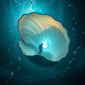 يُقال إنّ أحد الغواصين القدماء، وكان يُدعى بو ناصر، نزل ذات فجرٍ إلى البحر، فوجد في قاعه لؤلؤةً لا تشبه سائر اللآلئ. كانت مضيئةً من داخلها، كأنّ فيها قلبًا نابضًا بالنور. حين لمسها بيده، سمع همسًا خافتًا يشبه أنين امرأة. أفزعه الصوت، فتركها، لكنها عادت فظهرت في صدفة له أخرى.