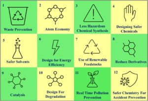الكيمياء الخضراء هي فكرة علمية رائدة أسسها العالمان بول أناستاس وجون وارنر عام 1998 في الولايات المتحدة، بهدف إعادة تصميم العمليات الكيميائية لتكون آمنة، فعالة، وصديقة للبيئة. تتكون من 12 مبدأً أساسيًا يشكلون خارطة طريق للاستدامة: منع النفايات بدلاً من معالجتها، زيادة اقتصاد الذرات، استخدام مواد خام متجددة، تقليل السمية، استبدال المذيبات السامة بالماء أو ثاني أكسيد الكربون، تعزيز كفاءة الطاقة، والتصميم للتحلل السريع.