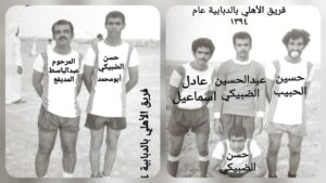 أسماء اللاعبين في فريق الأهلي بالدبابية: (السيد ماجد السيد حمزة الماجد – عيسى مهدي الماحوزي – المرحوم عبد الله بن عبد الله آل ياسين – رضي بزرون – السيد حسين السيد حمزة الماجد – حسين سعيد الماحوزي – عبد الوهاب الجزير – حميد سلمان عبد الهدي الحبيب – المرحوم حسين سلمان عبد الهادي الحبيب – المرحوم السيد سلمان السيد باقر السيد سلمان حباره – أحمد سالم عقيل من سلطنة عمان)(8).