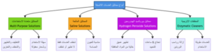 تتنوع محاليل العدسات اللاصقة المتوفرة في السوق بناءً على تركيبتها الكيميائية ووظيفتها. يمكن تقسيمها إلى الأنواع الرئيسية التالية: