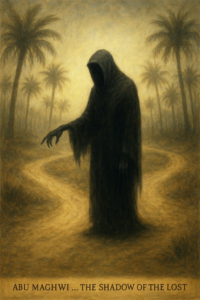 لا يظهر أبو مِغْوِي داخل البيت. ولا تحت نظر الجماعة. بل يظهر في الطرق المتشابهة، النخيل المتداخل، الصحارى القصيرة بين القرى والأماكن التي تكثر فيها الخيارات… وتغيب العلامات حيث الأسطورة تفهم الإنسان أكثر ما تضيعه، حين تتشابه السبل.