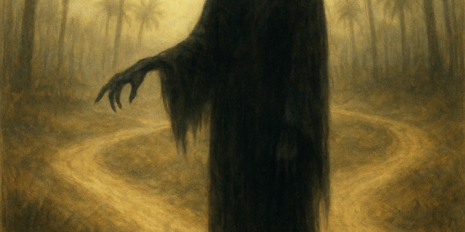 هذا كائن يغوي…لا يهاجم، بل يقودك خطوة خطوة إلى الخطأ. كائن بلا هيئة بخلاف كثير من الأساطير، لا يملك أبو مِغْوِي جسدًا محددًا. ففي الروايات، لا يُوصَف شكله بدقة فهو ليس مسخًا واضحًا ولا شيطانًا صريحًا، بل إنه حضور أكثر منه شخصًا. قد يُسمَع ولا يُرى، وقد يُرى طرفه ولا يُمسك، وقد لا يُدرَك أصلًا، لكن أثره ظاهر وهو التيه. وهو أخطر أنواع الكائنات، الذي لا تملك وسيلة للإشارة إليه.