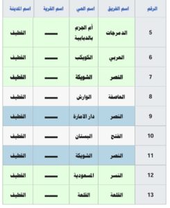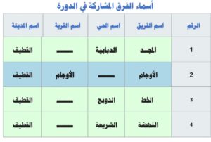 [1 المجــد الدبابية – 2 الأوجام الأوجام – 3 الخط الدوبج – 4 النهضة الشريعة – 5 الدمرجات أم الجزم – 6 العربي الكويكب – 7 النصر الشويكة – 8 العاصفة الوارش – 9 النصر دار الامارة – 10 الفتح البستان – 11 النصر الشويكة – 12 النسر المسعودية – 13 القلعة القلعة – 14 الوحدة المدني – 15 الوحدة بالشريعة – 16 الهادي الكويكب 17 الوفاء الزريب – 18 القلوب الكويكب – 19 الهلال الشريعة – 20 العربي باب الشمال – 21 النجوم الشويكة – 22 التضامن الشريعة – 23 المعجزات الزريب – 24 السلت باب الشمال – 25 التضامن الكويكب – 26 الجعفري مياس – 27 النسر الكويكب – 28 الكواكب القلعة – 29 التضامن التوبي – 30 الأنصار الشويكة – 31 العربي الدبابية – 32 “غير معروف!”]