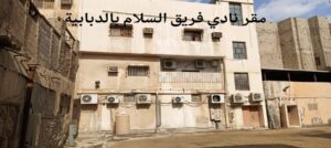 مقر نادي السلام الرياضي الرئيسي في داخل سوق مياس بجانب المبني نادي الشباب الرياضي.