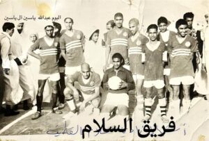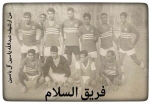 (من اليمين) الأستاذ سعيد سلمان عبد الهادي الحبيب رئيس نادي فريق السلام، (ومن اليسار) المرحوم سلمان عبد الله حسن آل حمدون من أبرز الإداريين في نادي السلام.