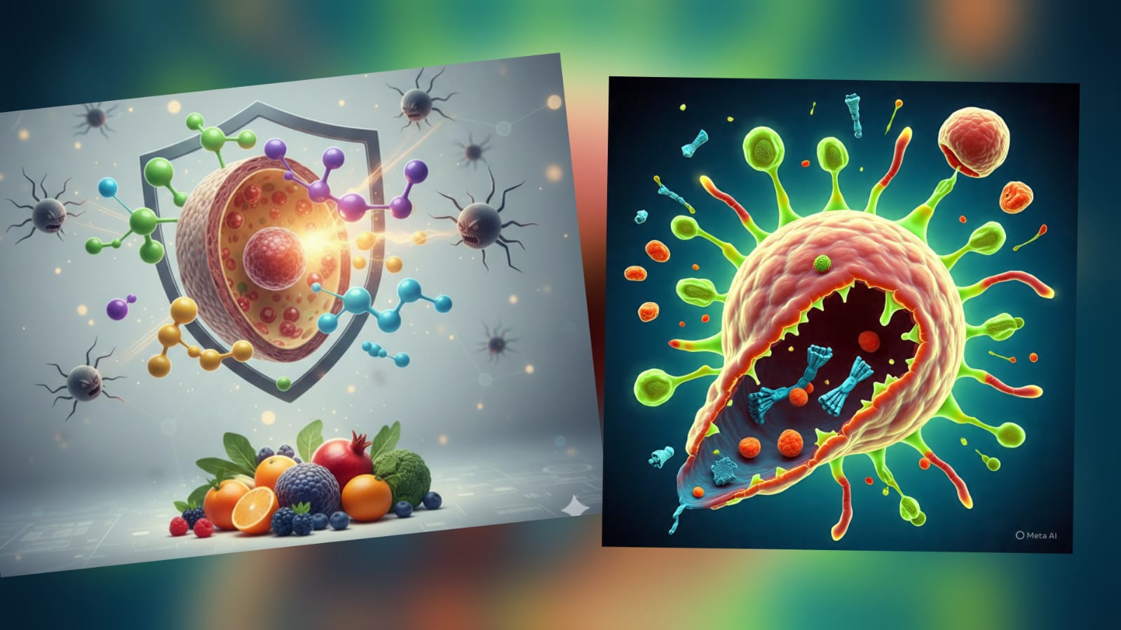 يلعب التوازن التأكسدي دوراً حاسماً في كفاءة الجهاز المناعي. تستخدم الخلايا المناعية (مثل الخلايا البلعمية) الجذور الحرة كـ “سلاح كيميائي” لقتل البكتيريا والفيروسات الغازية في عملية تُعرف بـ “الانفجار التأكسدي” (Oxidative Burst). هنا تظهر أهمية مضادات الأكسدة في حماية الخلايا المناعية نفسها من الانتحار أو التلف أثناء قيامها بعملها. فيتامين (C) ، على سبيل المثال، يتركز بتركيزات عالية جداً داخل الخلايا البيضاء، مما يعزز من قدرتها على الحركة والالتهام.