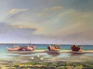 وبعد القصر، كان لا بد من التوقف عند شواطئ بحر دارين العميقة، ومشاهدة مينائها العامر بسفن ومراكب الصيد التي تزود المنطقة بالأسماك من بحر الخليج. وكان الفضول يدفعنا للتعرف على أنواع السفن التي يستخدمها الصيادون، والتي تُسمّى “اللنجات”، ولكل منها تصميمه الخاص بحسب طبيعة العمل الذي يقوم به.
