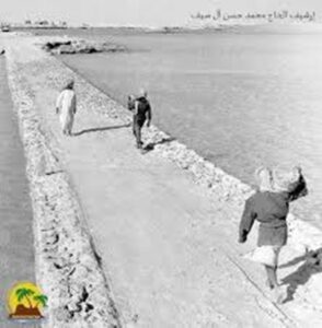 فحتى منتصف الستينيات كانت وسائل التنقّل بين القطيف وتاروت تعتمد على القوارب، أو على العربات التي تجرّها الدواب، والمعروفة بالقواري، والتي تمرّ في طريق ساحلي طيني يتأثر بحركة المدّ والجزر. كان مشهد العبور جزءًا من الحياة اليومية: مياه ضحلة، وجزر صغيرة تظهر حين ينحسر عنها الماء، ورائحة البحر، وحركة الناس الهادئة التي تفرضها الجغرافيا الطبيعية.