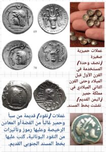 ٤. العملة الحميرية من القرن ١ إلى ٣ ميلادي بها أسماء ملوك حمير.