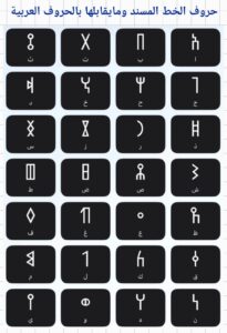 فليس في العربية -مثلا- حرف السين “السامخ” (nazalized Š) أو كما تُعرَف بالسين الثالثة وهي السين الأنفية أو العالية لأنها مدغمة مع ما يشبه صوت النون والتي تظهر واضحة في بعض اللغات الأفريقية كما هو في أرتيريا وأثيوبيا والحبشة وفي مناطق أفريقية أخرى ففي هذه الحالة يحدث اختيار ما يناسبها من حروف المسند.