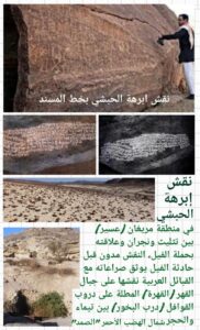 نقش ابرهة الحبشي (نقش مريغان): من أشهر نقوش خط المسند على الإطلاق يقع في محجة مريغان قبل الطائف وسيرد ذكره مفصلاً.