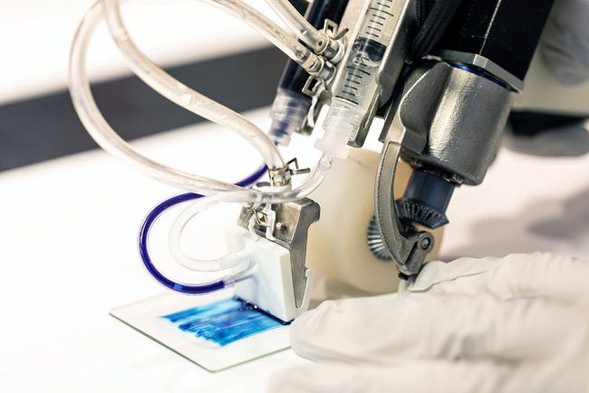 تلتصق الدعامات الناتجة من الطابعة الحيوية بالأنسجة المحيطة بالجرح وتحاكي خصائص الأنسجة الموجودة ؛ بدون الحاجة إلى أي خياطة. وقال الدكتور علي تاميل: “الطابعة قوية وتسمح بملء التجويف بالدعامات الليفية التي تشبه ألياف النسيج الأصلي”.